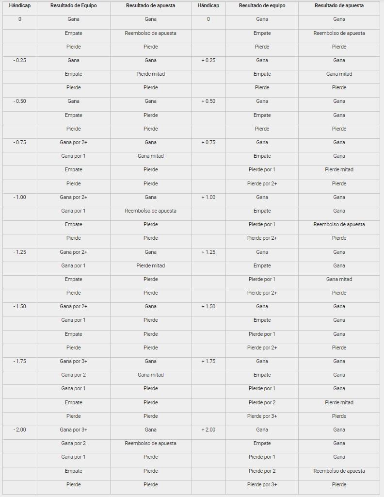 Asian Handicap: in this bet type, the value of handicap argument is the number, which is the multiple of 0.25 (which means that it can be divided by 0.25 without a remainder). For example, 0.25; 1.25; 1.75 etc. When you make Asian Handicap bet, your bet amount is automatically divided into two equal bets with the same odds, however, with two different bet arguments. Here, the argument of one bet will be the number, which is received, when we add 0.25 to the general argument value. The argument of the other bet will be the number, which is received after we subtract 0.25 from the argument value.