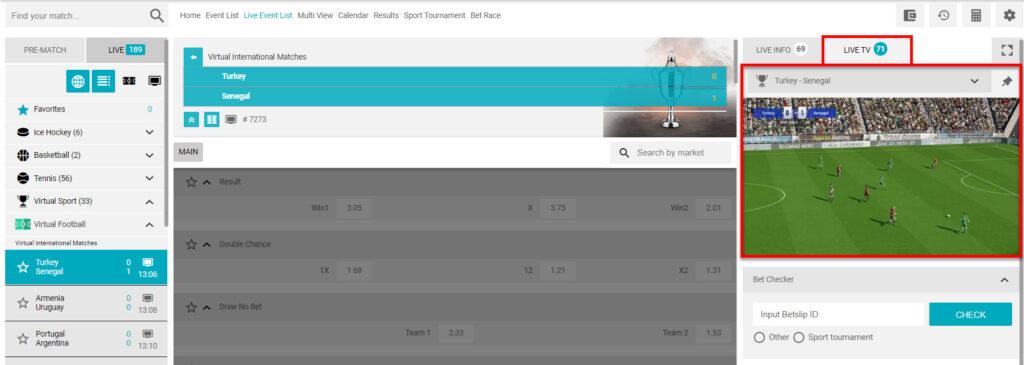 Note: if you want to activate the live streaming for Virtual football matches you can create an appropriate change request. The streaming provider will be added to your project and the players will be able to watch the games on the Sports page.