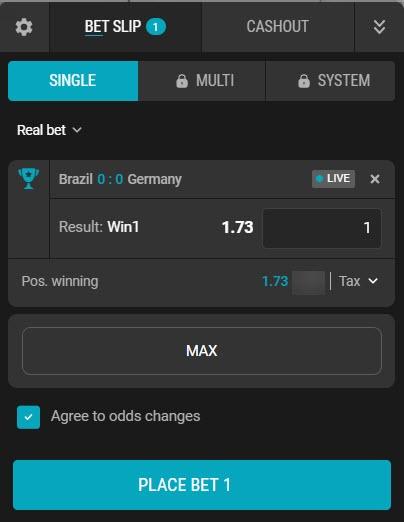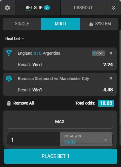 You can click on the appropriate odds to add the outcome to the bet slip and make a single, multi or system bet: